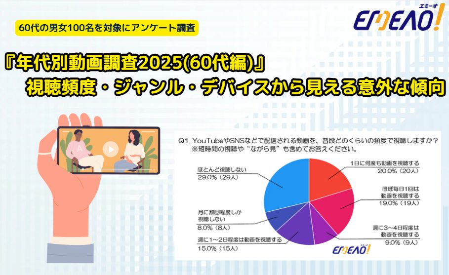『年代別動画調査2025(60代編)』視聴頻度・ジャンル・デバイスから見える意外な傾向(ビジネスマッチングサイト『エミーオ』調べ)