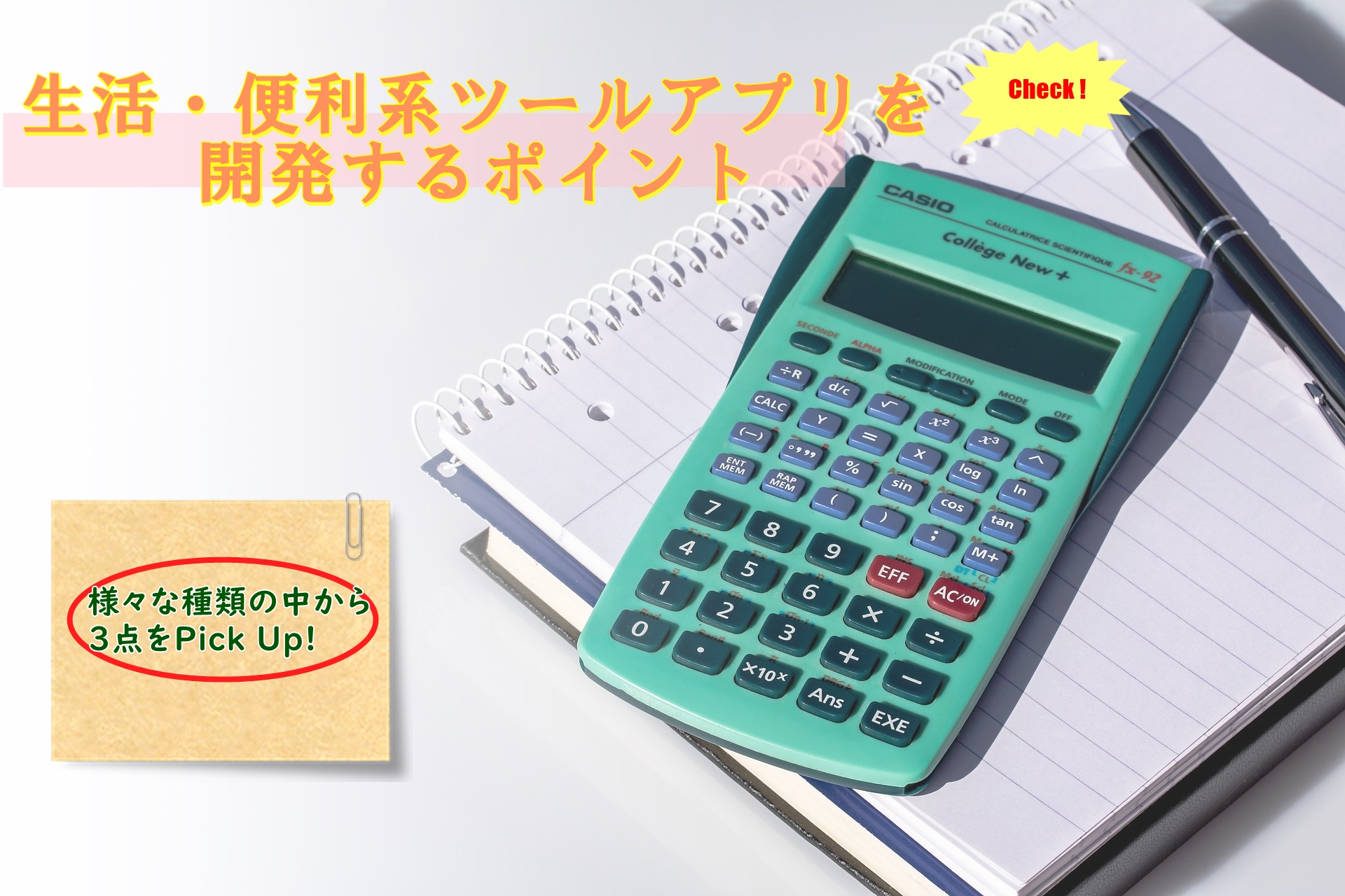 今回は、生活・便利ツール系アプリの中でも特にイメージしやすい3種類をピックアップして、それぞれの特徴と開発の際のポイントをご紹介します。