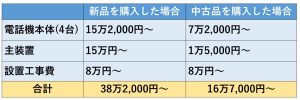 上記の表にみられるように、ビジネスフォンの導入費は新品か中古かによって大きく異なります。