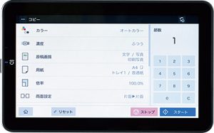 ムラテックの複合機「MFX-C7360/MFX-C7300/MFX-C7250」の3機種には、共通して操作しやすいタッチパネル式の操作画面が搭載されています。サイズは10.1インチの大型で、シンプルでわかりやすい画面です。
