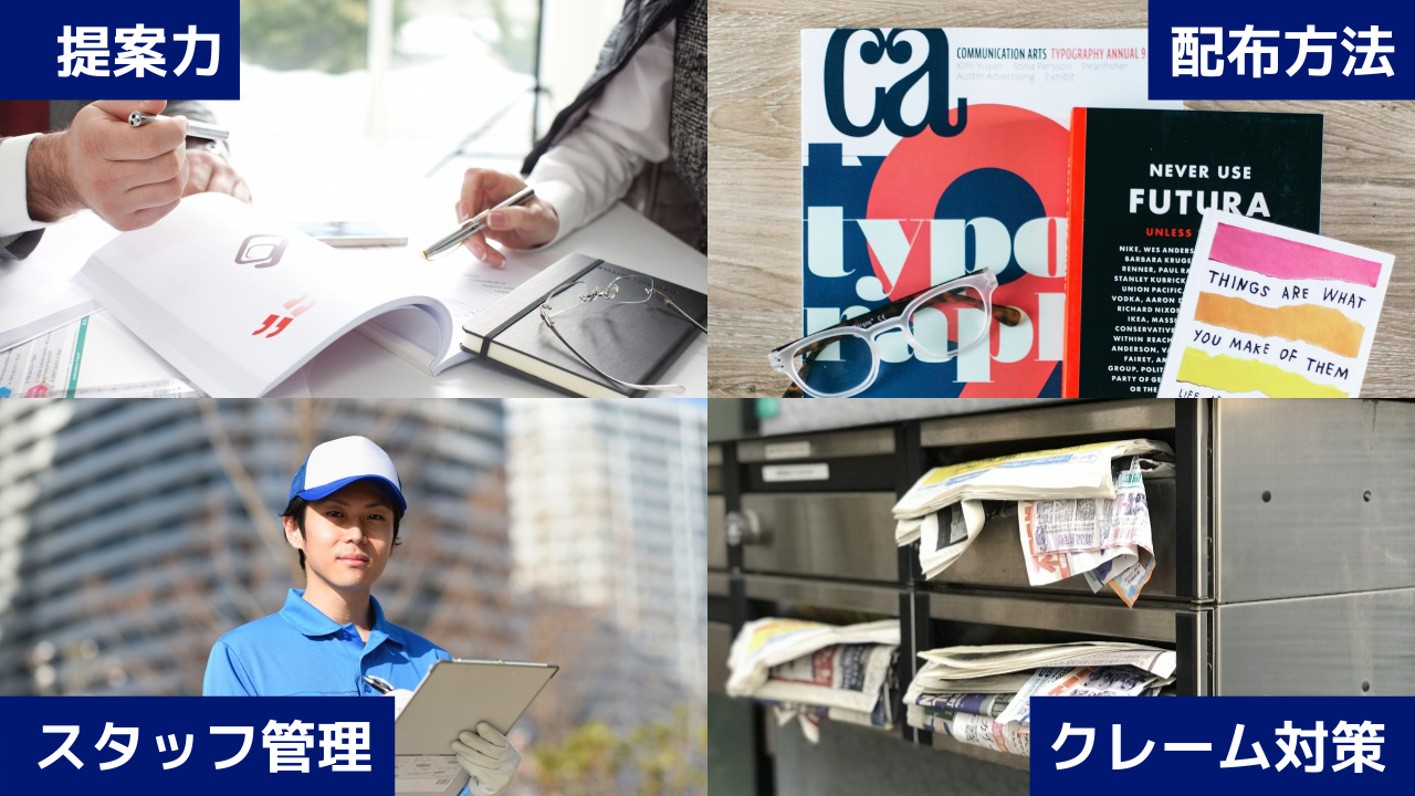ポスティング会社を選ぶポイントは、目的や配布方法を明確に決めクレーム対策や配布管理がしっかりできていることです。