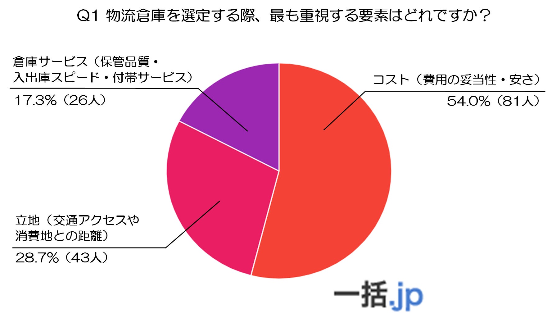 調査結果1:物流倉庫を選定する際、最も重視する要素はどれですか?