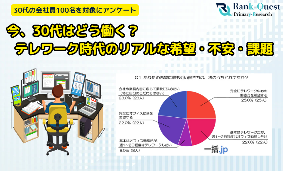 近年、テレワークの浸透やオフィス勤務の見直しなど、働き方の多様化が急速に進んでいます。とりわけ、企業の中核を担う30代のビジネスパーソンは、リモートワークをはじめとする新しい勤務形態にどのような価値を見出し、どのような課題や不安を抱えているのでしょうか?