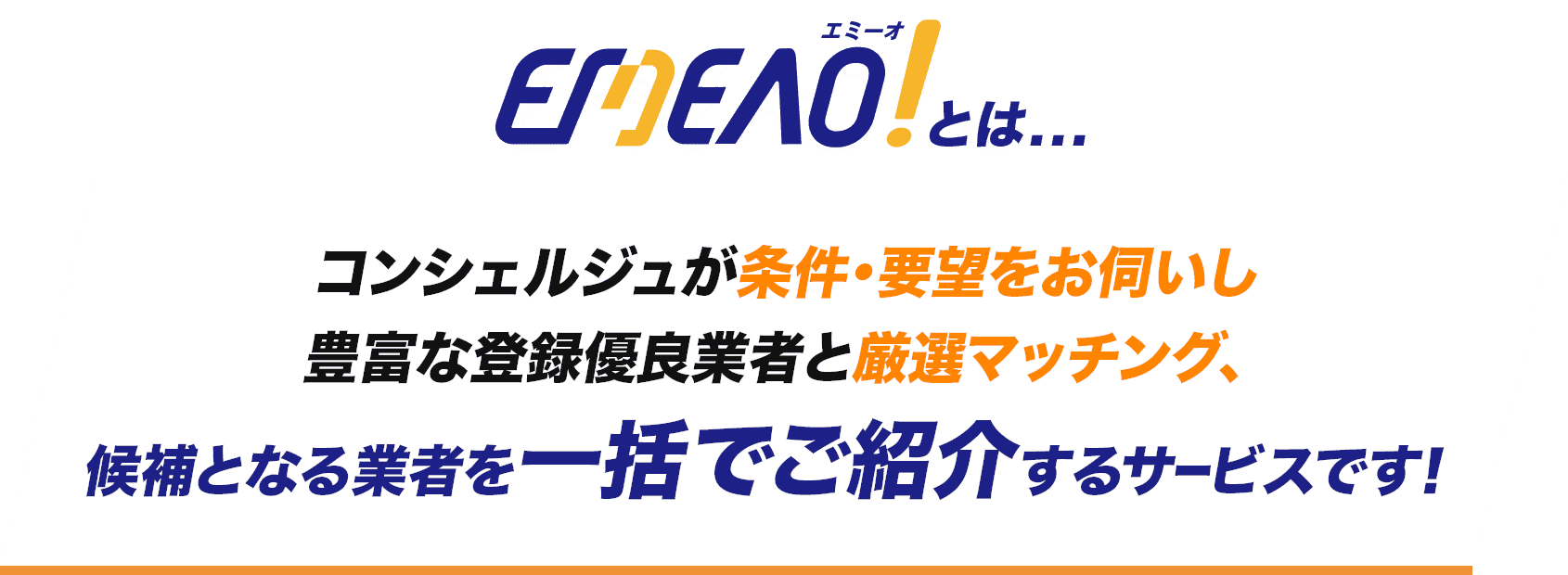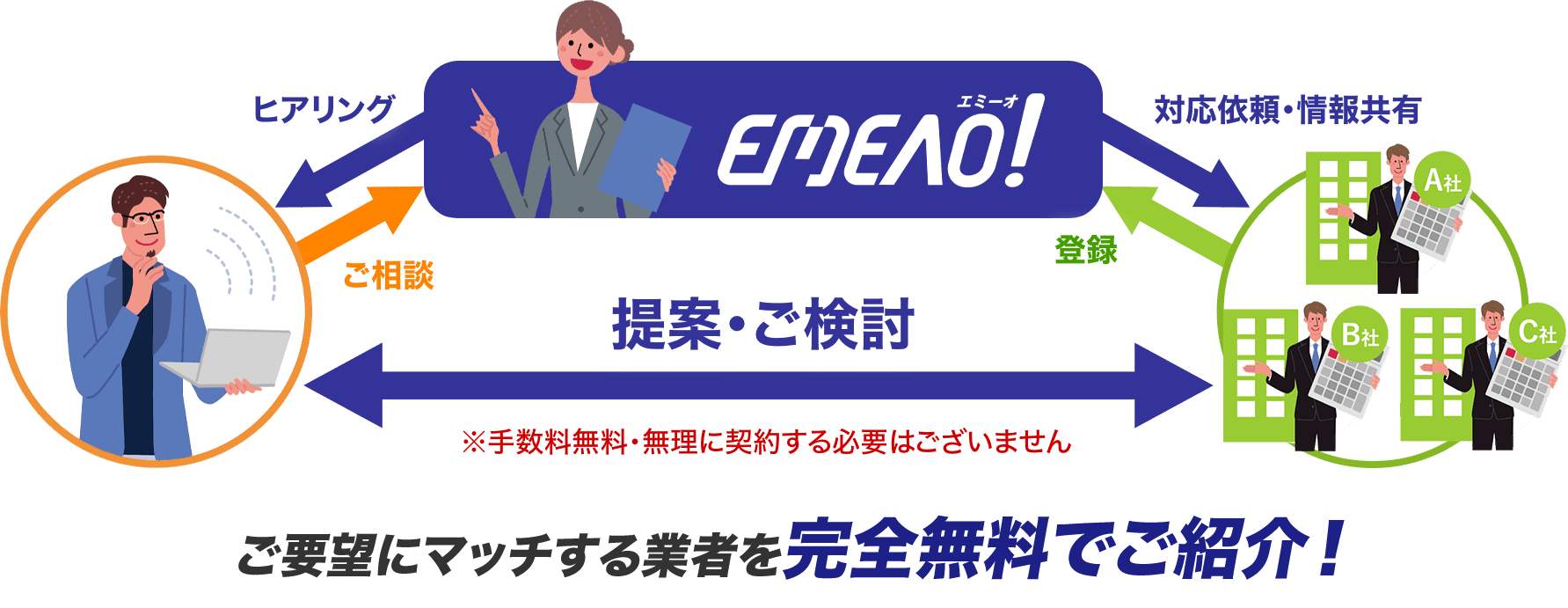 お客様は条件や要望をエミーオに伝えるだけ。